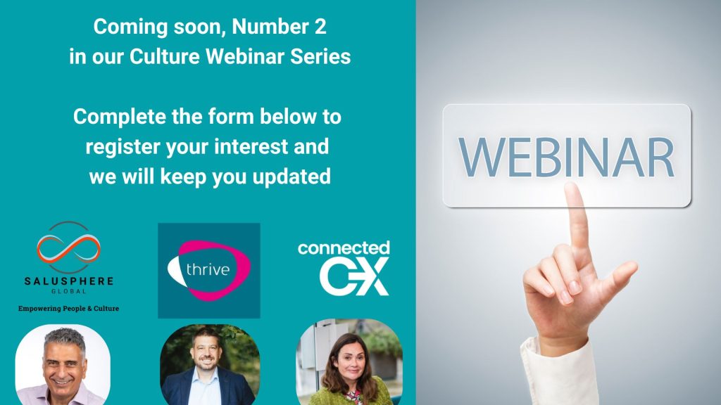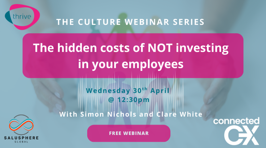Join Clare White (Connected CX), Simon Nichols (Thrive), Ayrtam Ryall (Salusphere Global) and guest speaker (TBC) in our second Culture Webinar series. Learn practical solutions to help you tackle stress and burnout at work, improve productivity, and create a healthy and happy workplace!